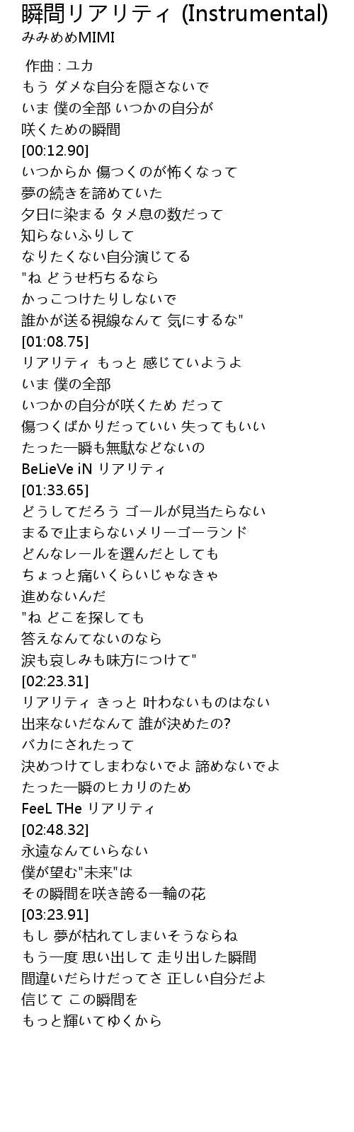 | [02:23.83] | リアリティ きっと 叶わないものはない |