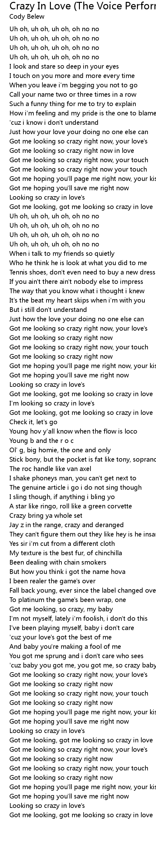 I'm looking so crazy in love's |