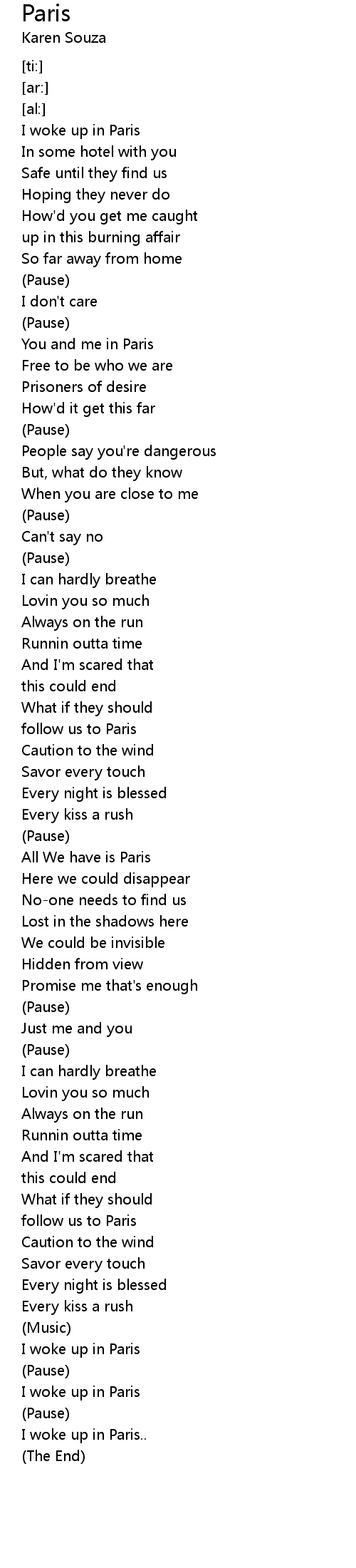 | [00:35.20] | I woke up in Paris |