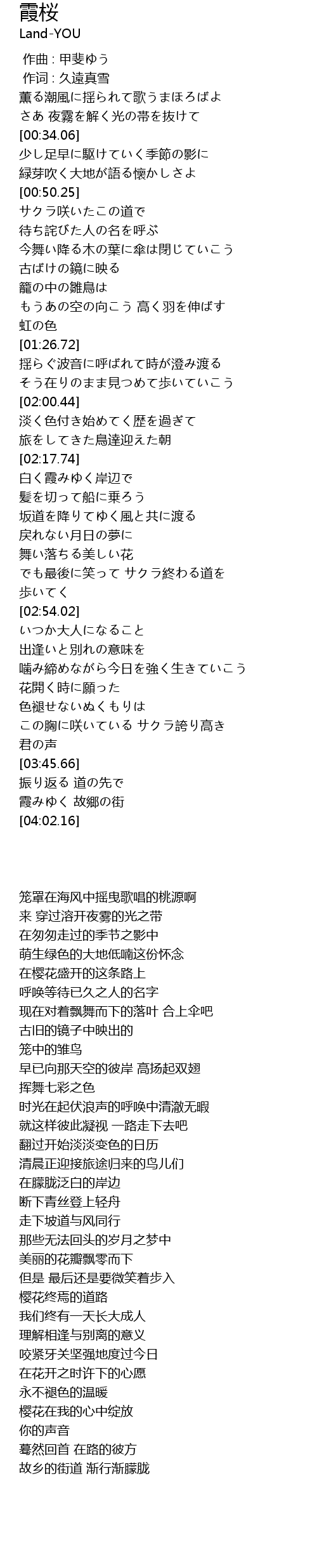 | [02:41.91] | でも最後に笑って サクラ終わる道を |