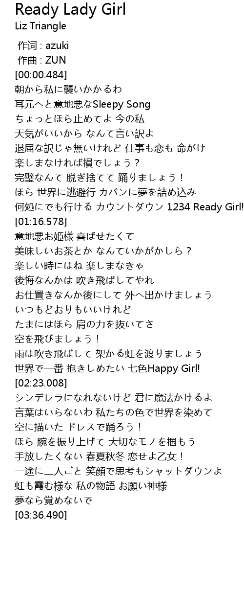 | [01:09.656] | 何処にでも行ける カウントダウン 1234 Ready Girl!! |