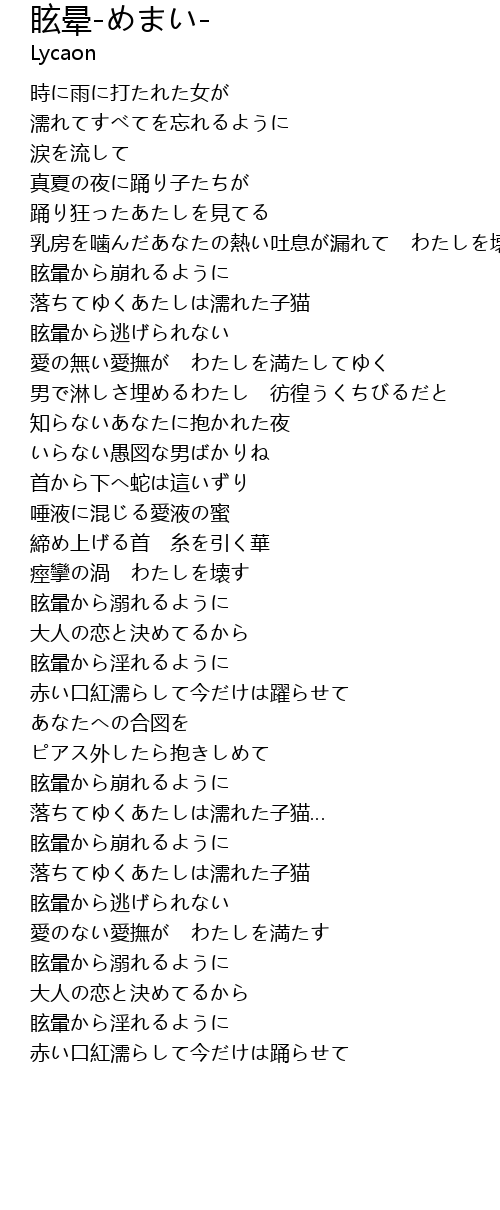 | [00:54.33] | 乳房を噛んだあなたの熱い吐息が漏れて わたしを壊す |