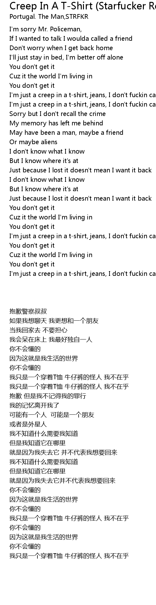 I'm just a creep in a t-shirt, jeans, I don't fuckin care |