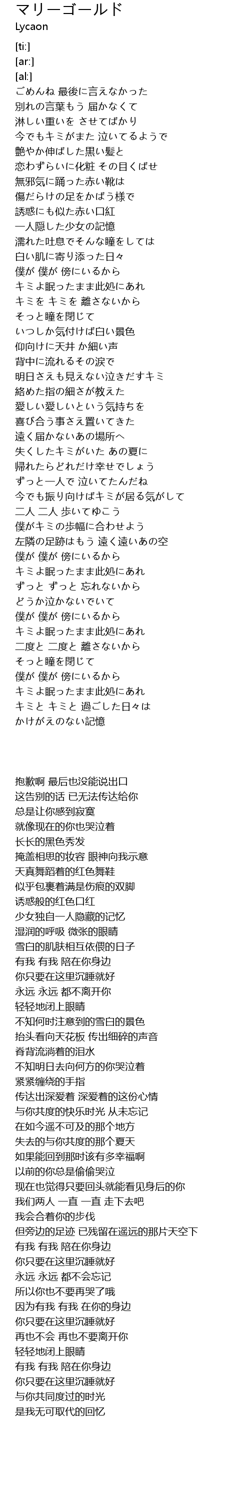 | [05:02.18] | キミよ眠ったまま此処にあれ |