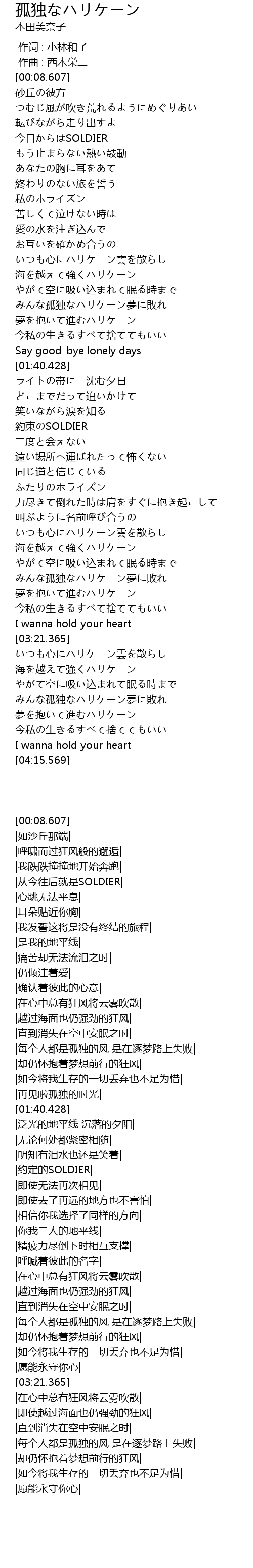 | [03:53.156] | みんな孤独なハリケーン夢に敗れ |
