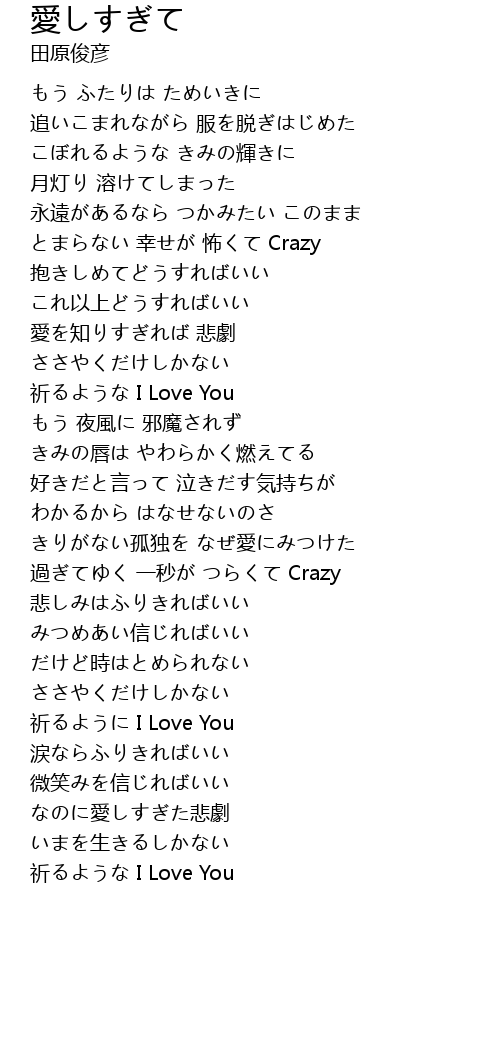 | 過ぎてゆく 一秒が つらくて Crazy | |