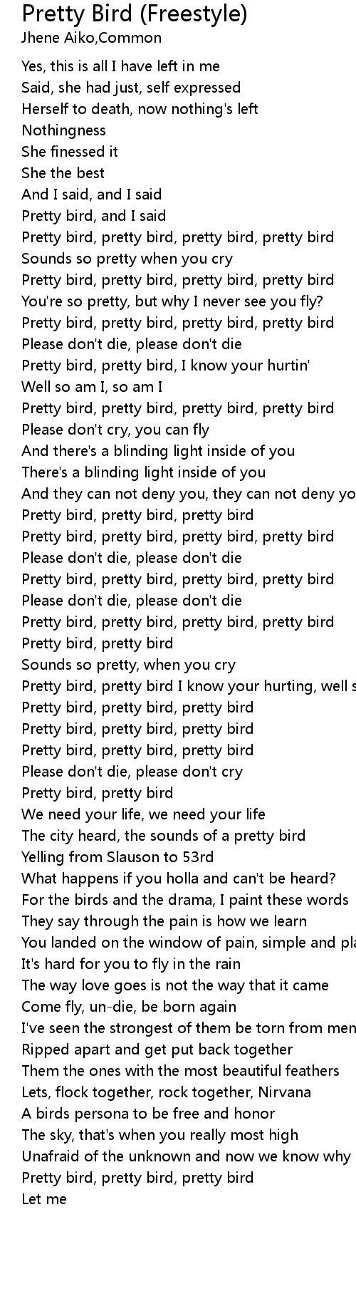 Pretty bird, pretty bird, pretty bird, pretty bird |