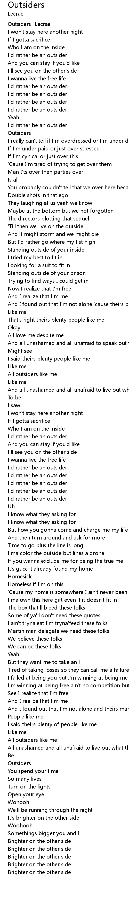 | [00:00.211] | Outsiders -Lecrae |
