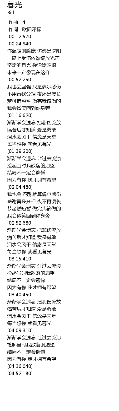 | [04:04.220] | 每当想你 就看见暮光 |