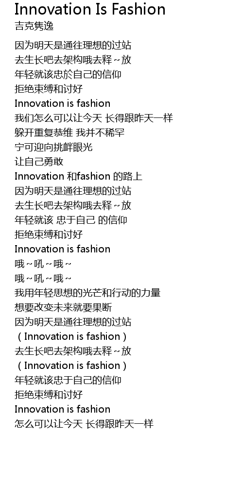 | [01:15.48] | Innovation 和fashion 的路上 |