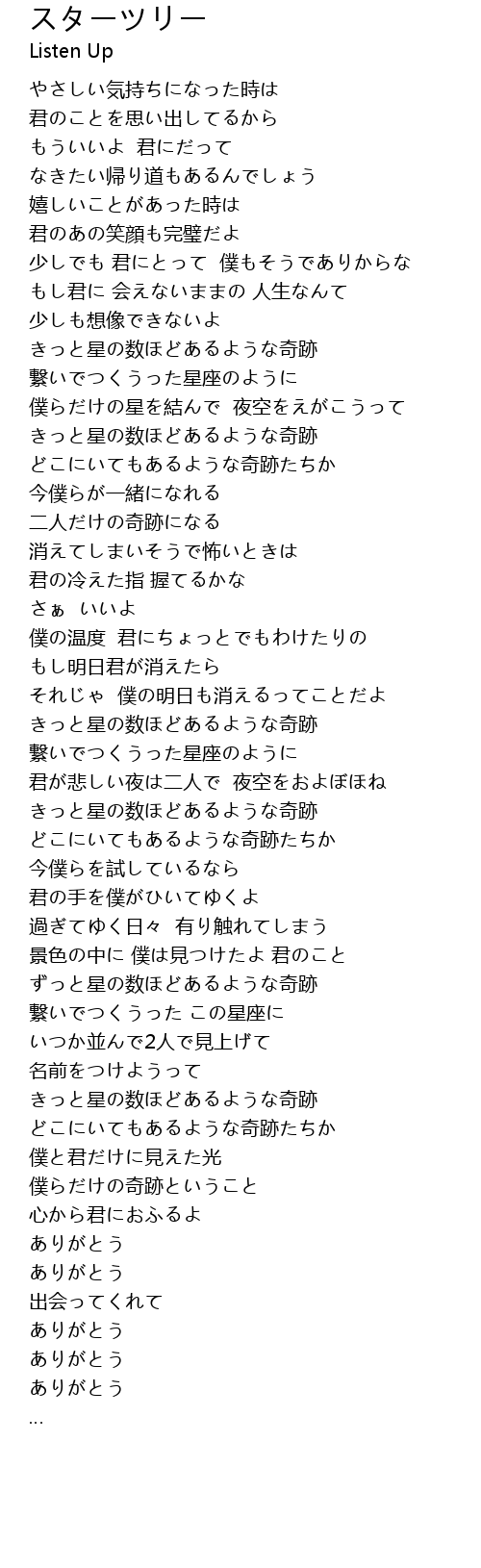 | [03:18.27] | きっと星の数ほどあるような奇跡 |