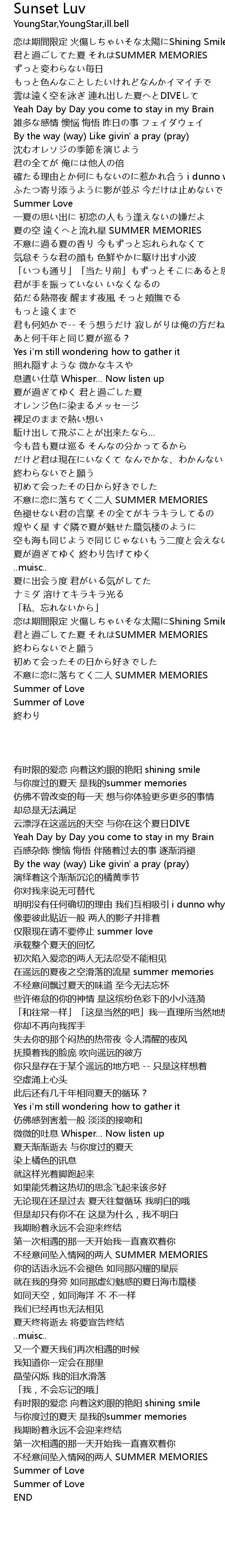 | [03:01.57] | 不意に恋に落ちてく二人 SUMMER MEMORIES |