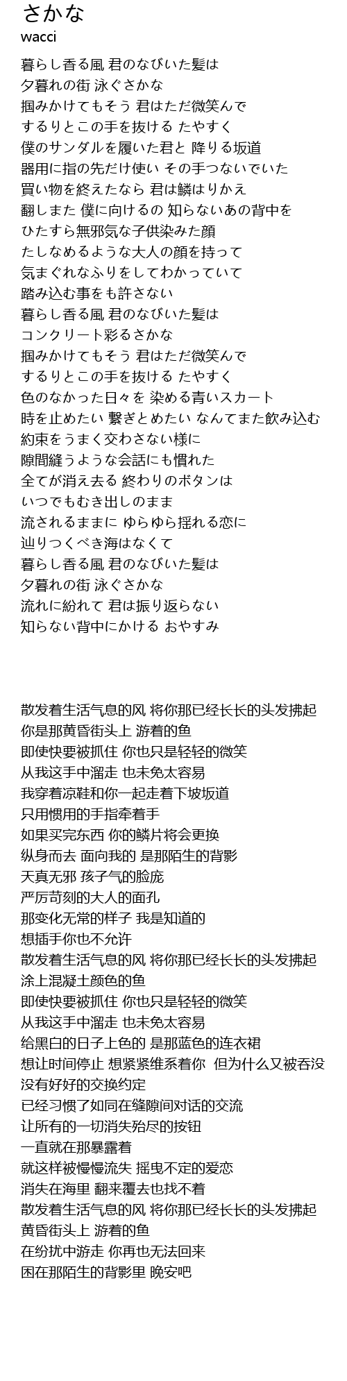 | [00:07.300] | 夕暮れの街 泳ぐさかな |