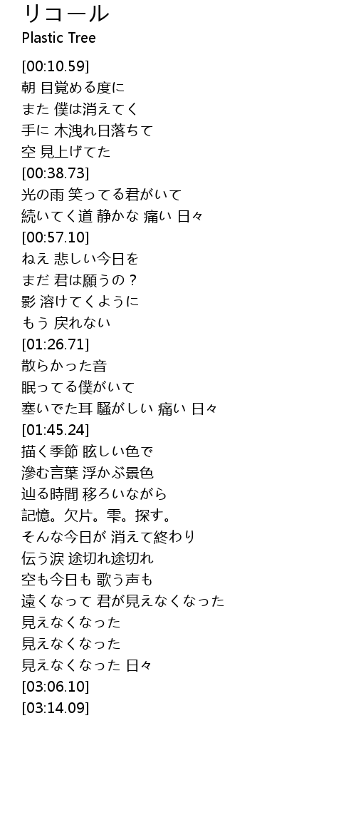 | [02:28.12] | 記憶。欠片。雫。探す。 |