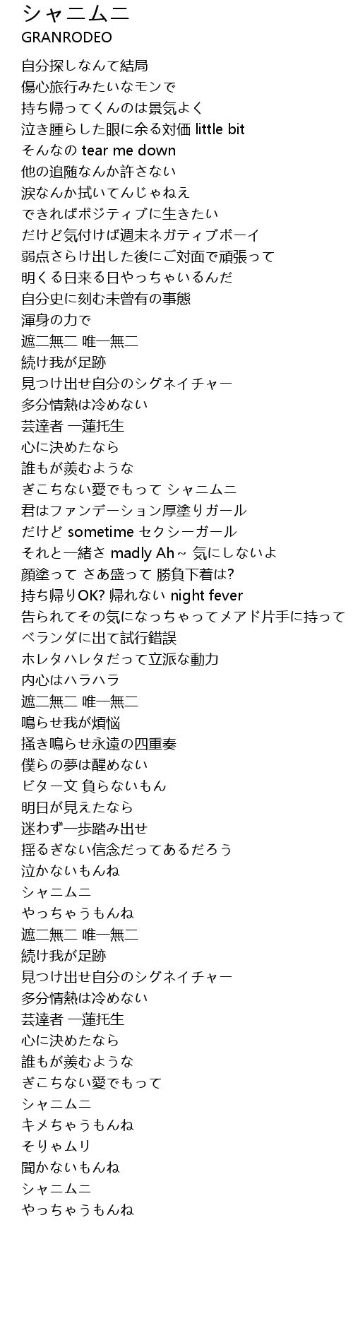 | [01:40.96] | ぎこちない愛でもって シャニムニ |