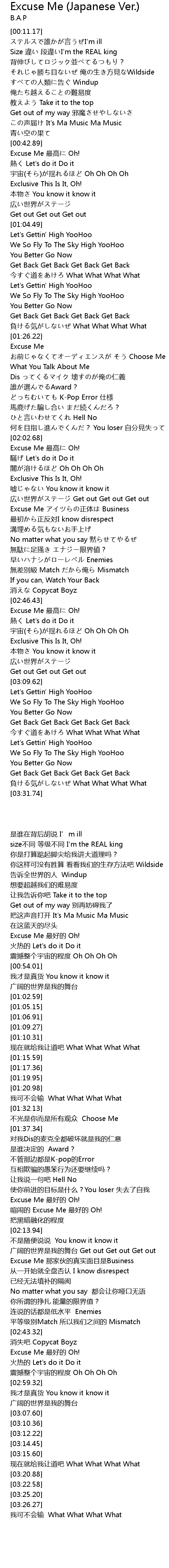 | [00:43.54] | Excuse Me zui gao Oh! |