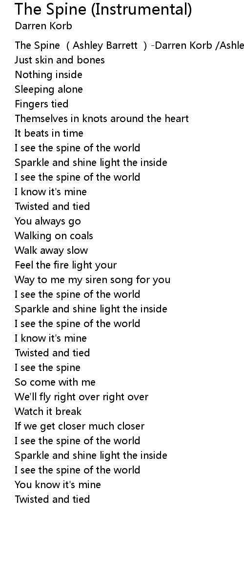 | [00:00.00] | The Spine Ashley Barrett Darren Korb Ashley Barrett |