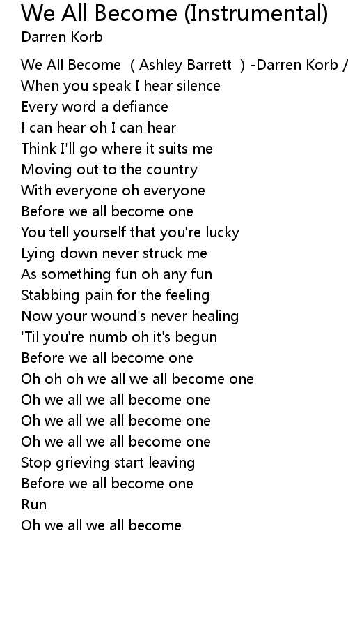 | [00:00.00] | We All Become Ashley Barrett Darren Korb Ashley Barrett |