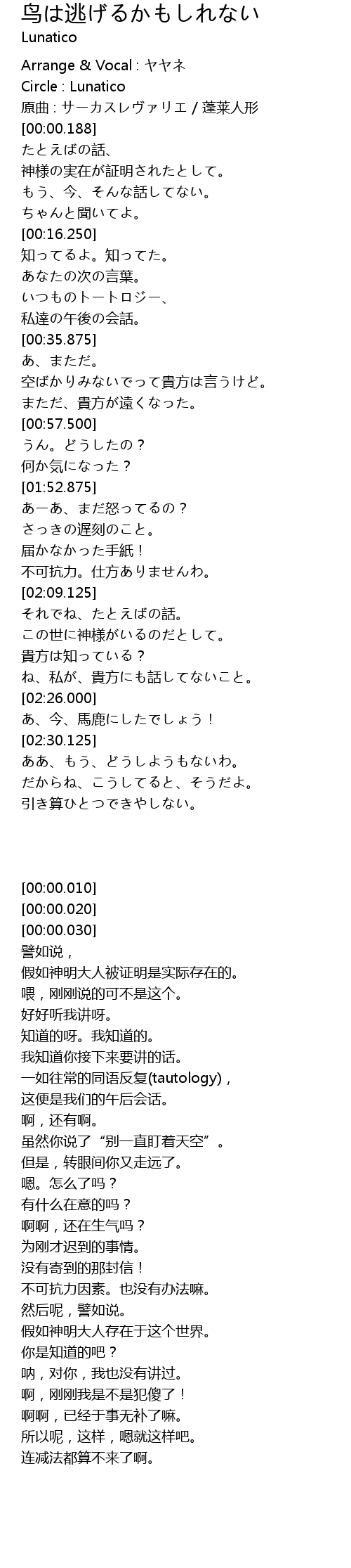 | [00:00.030] | 原曲 : サーカスレヴァリエ / 蓬莱人形 |