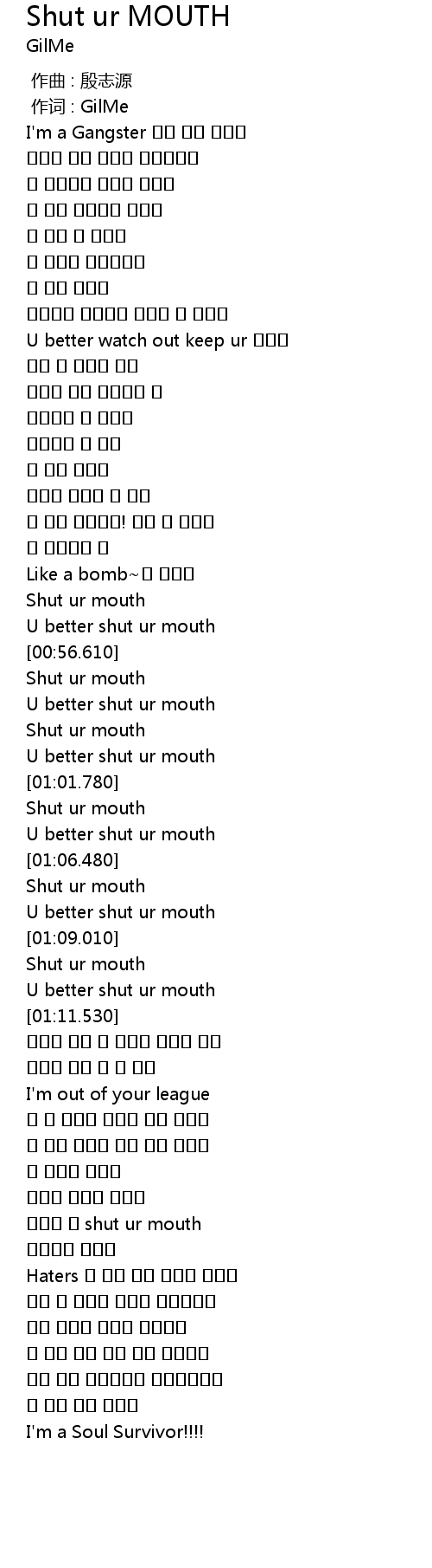| [01:26.540] | 쳐봤자 난 shut ur mouth |