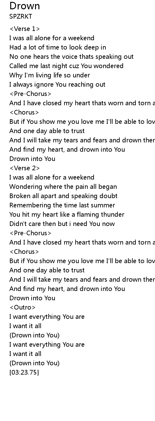 | [02:38.82] | And I will take my tears and fears and drown them in the water |