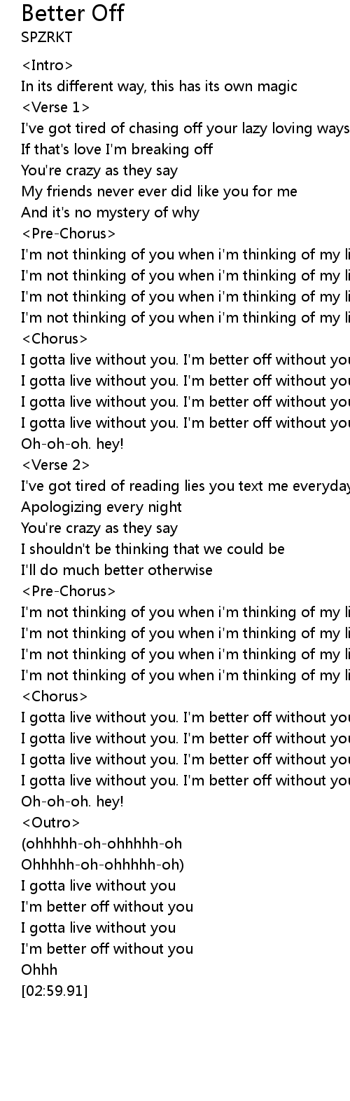| [02:46.52] | I'm better off without you |
