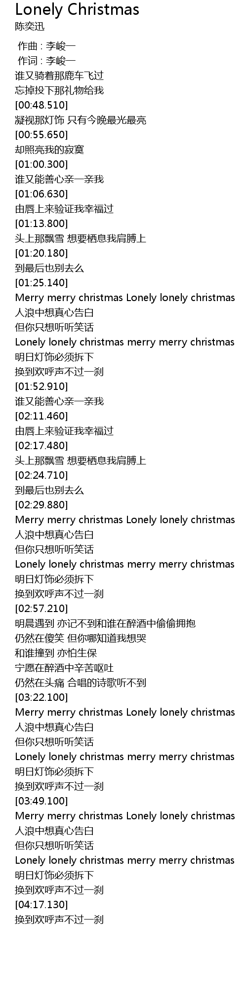 | [03:35.510] | Lonely lonely christmas merry merry christmas |