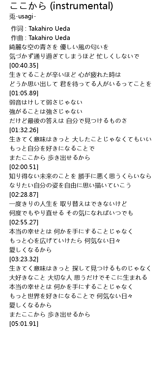 | [00:00.000] | 作词 : Takahiro Ueda |