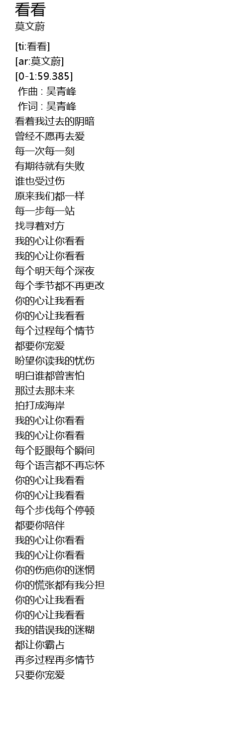 | [01:37.006] | nǐ de xīn ràng wǒ kàn kàn |