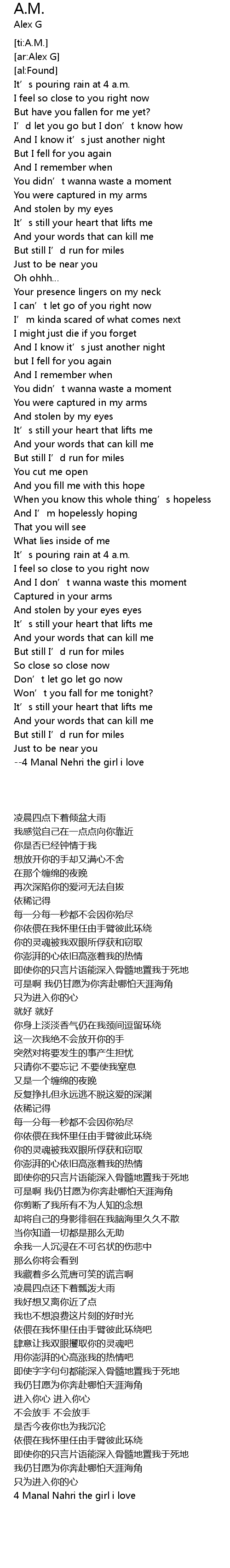 | [03:00.98] | It' s pouring rain at 4 a. m. |