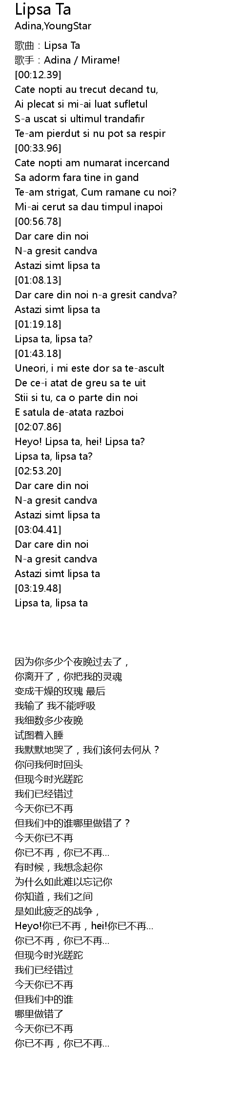 | [03:22.48] | Lipsa ta, lipsa ta |