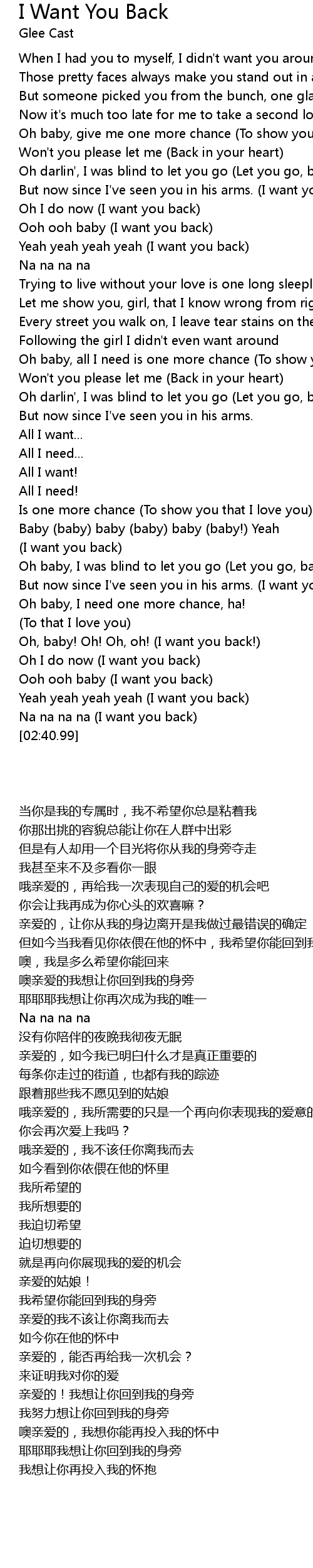 Yeah yeah yeah yeah (I want you back) |