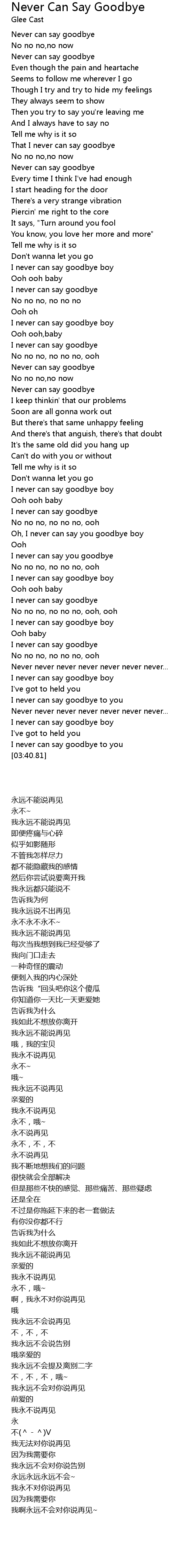 I never can say goodbye |