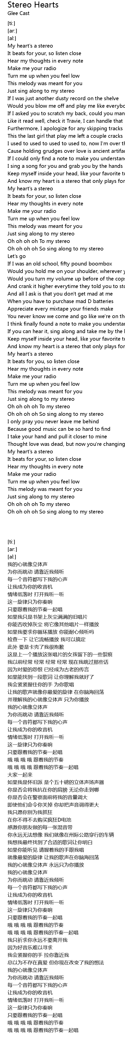 Stereo Hearts Lyrics