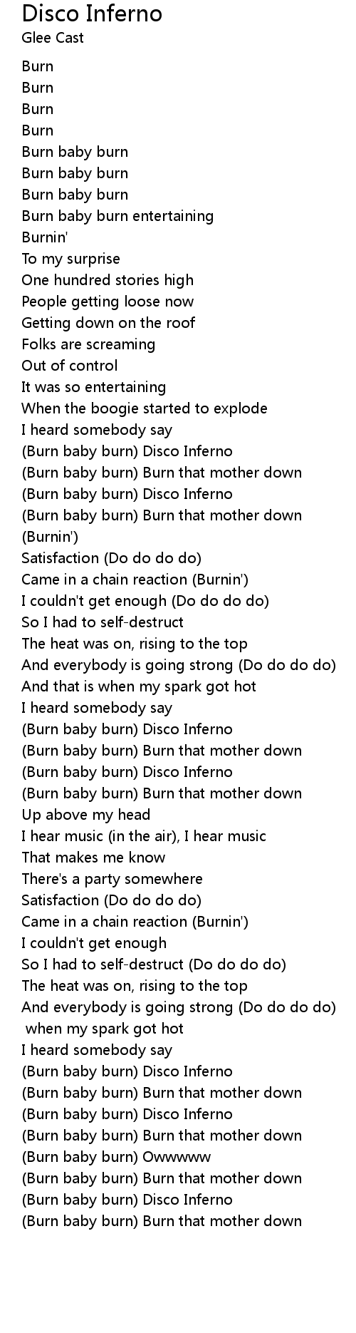 (Burn baby burn) Disco Inferno |