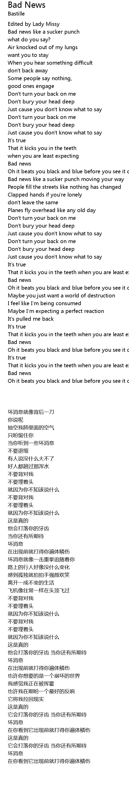 | [01:39.81] | Bad news like a sucker punch moving your way |