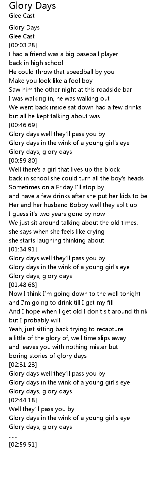 | [00:00.92] | Glory Days |