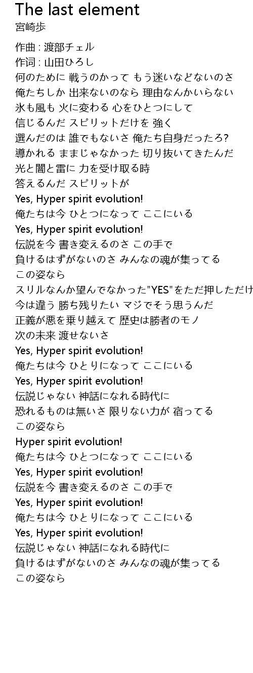 | 恐れるものは無いさ 限りない力が 宿ってる | |