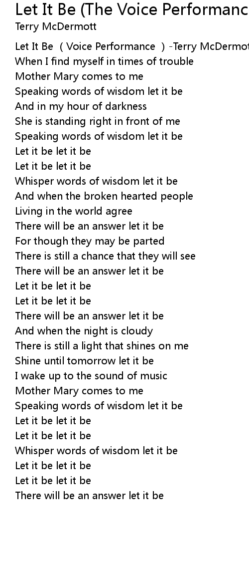 | [00:00.00] | Let It Be Voice Performance Terry McDermott |