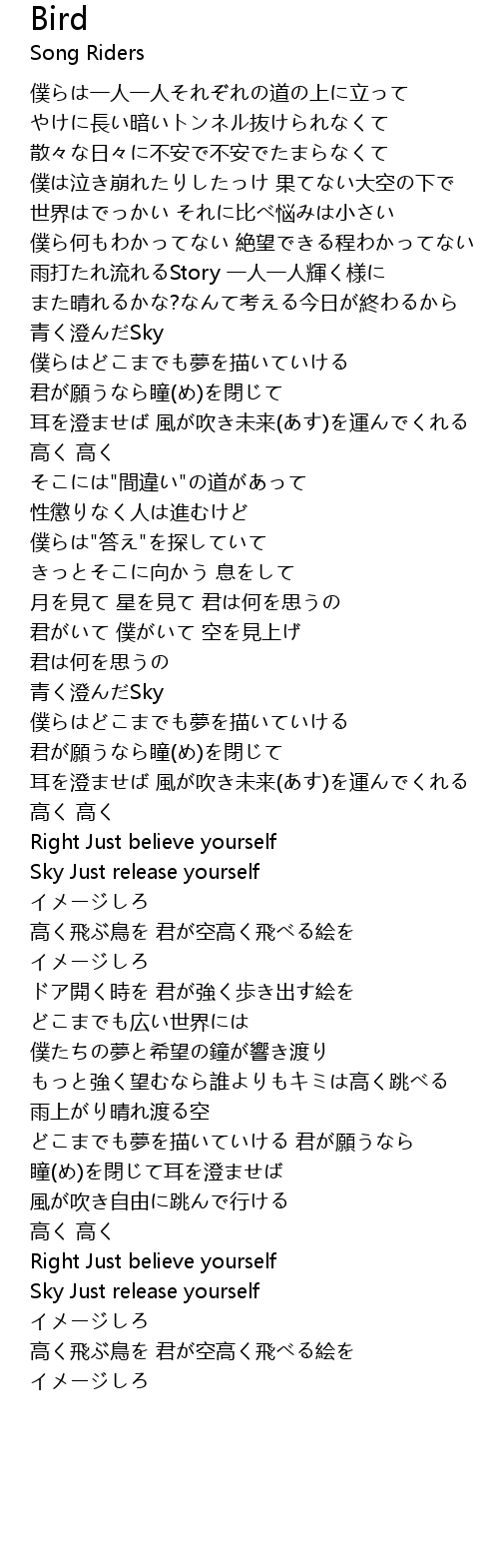 | 高く飛ぶ鳥を 君が空高く飛べる絵を | |