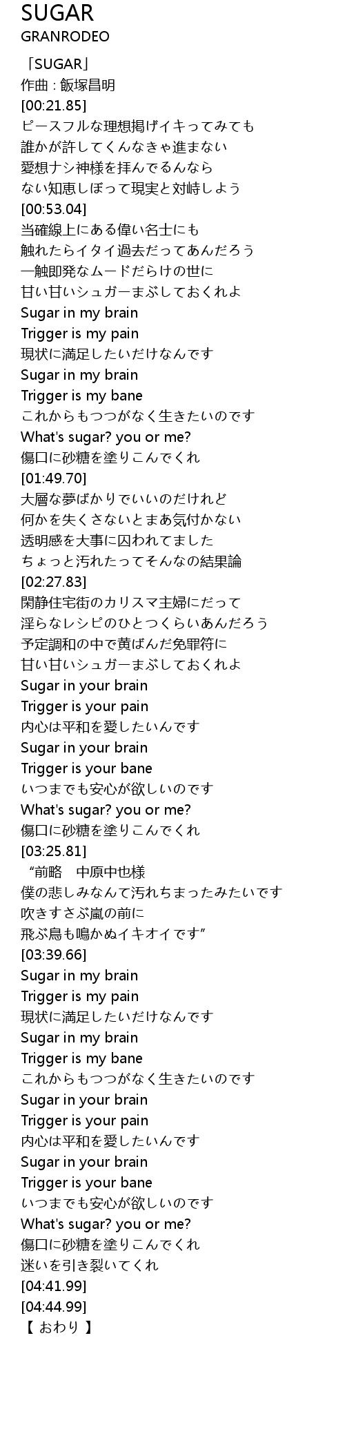 | [01:43.53] | 傷口に砂糖を塗りこんでくれ |