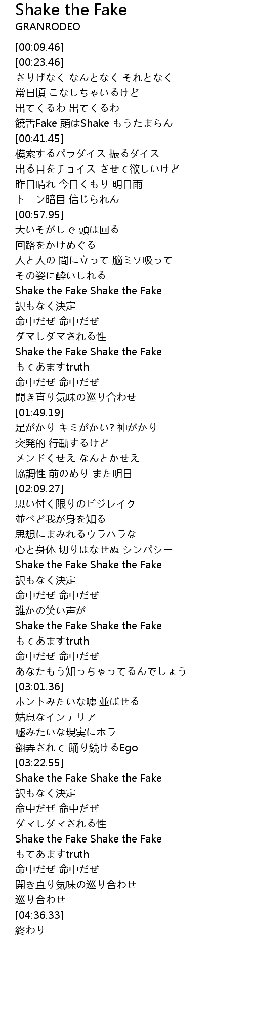 | [03:54.68] | Shake the Fake Shake the Fake |