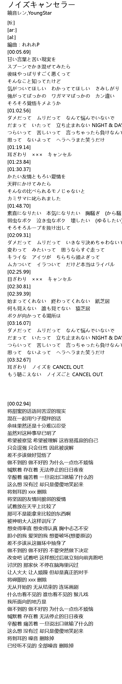 | [03:32.88] | 耳ざわり ノイズを CANCEL OUT. |