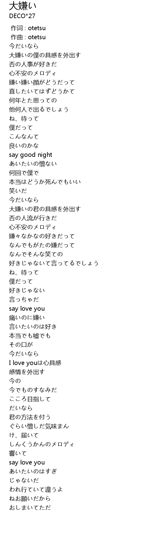 | [00:07.964] | 大嫌いの僕の具感を外出す |