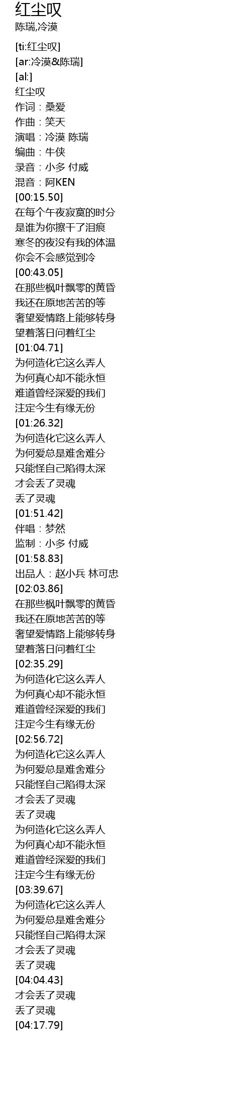| [00:00.00] | 红尘叹 |