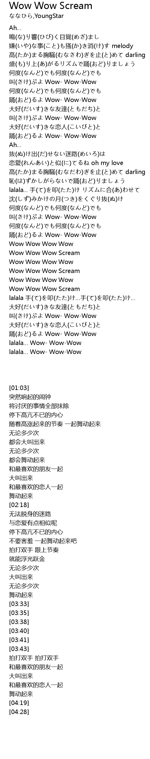 | [01:36] | 叫(さけ)ぶよ Wow- Wow-Wow |