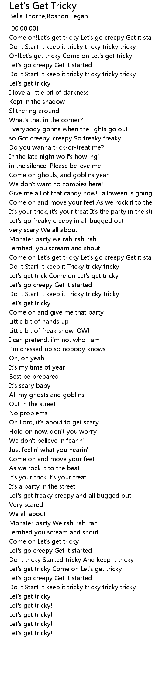 Come on!Let's get tricky Let's go creepy Get it started |