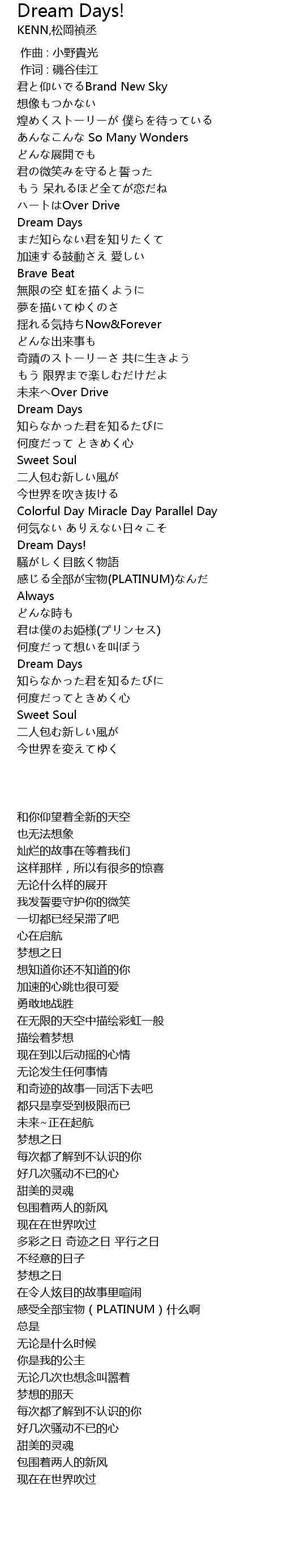 | [01:33.46] | Dream Days |