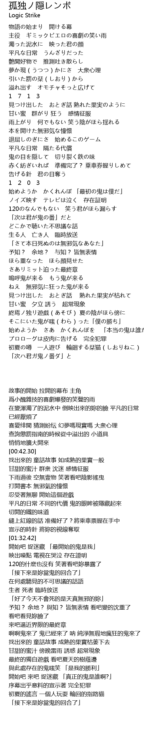 | [01:34.10] | 始めようか かくれんぼ 「最初の鬼は僕だ」 |