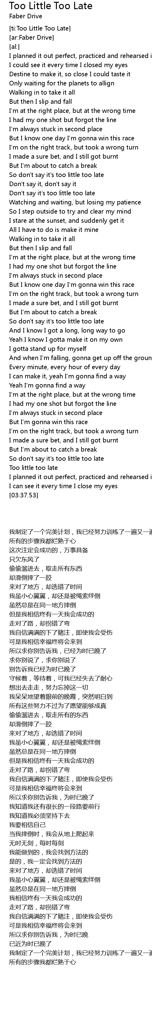 [ti:Too Little Too Late] |